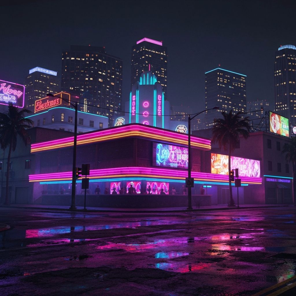 In 2040, corner liquor stores in Vice City will accept real payments. Stock up on essentials before your next heist. Reality is just a suggestion.